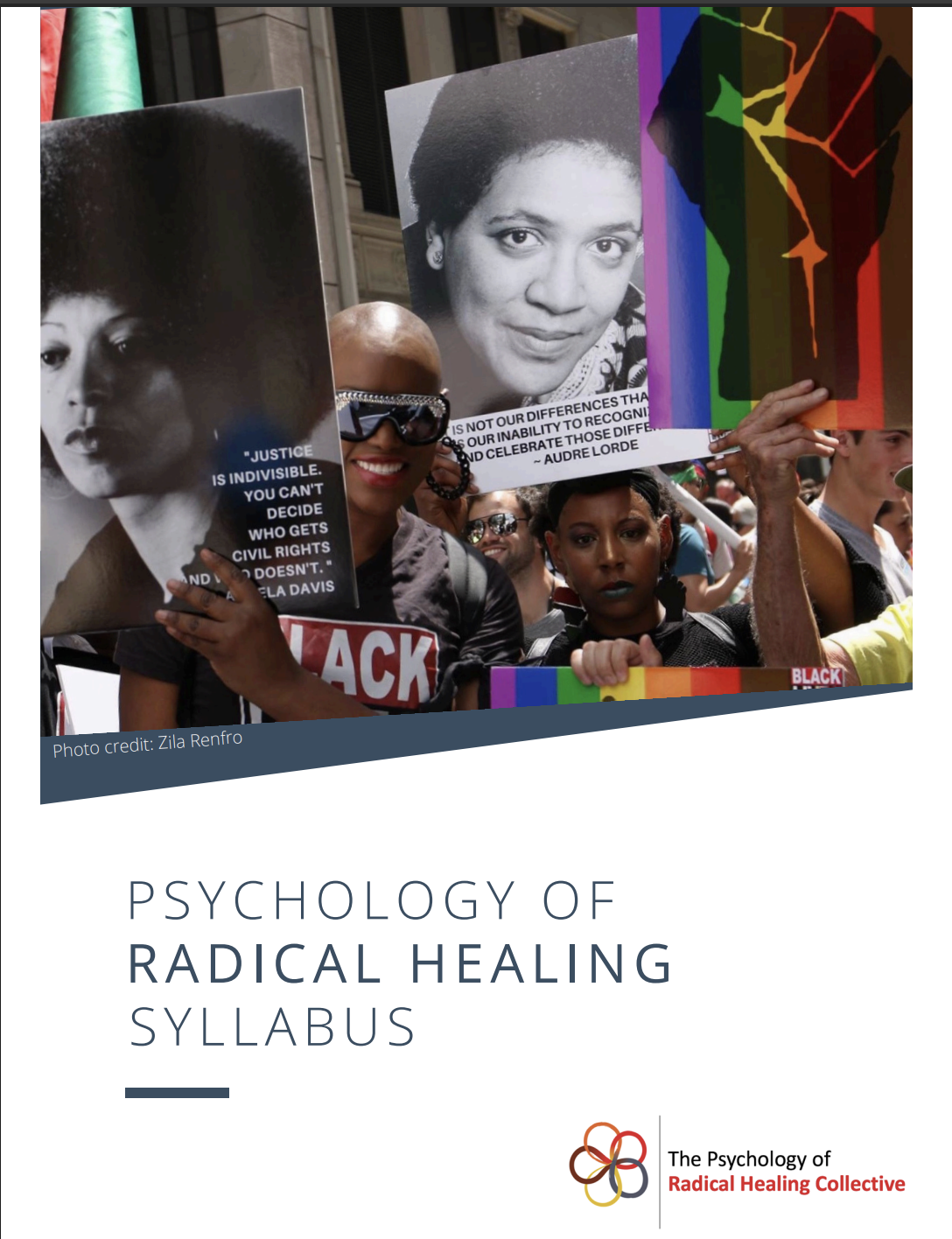 Erika L. Ewing and Kamla Millwood featured on the cover page of the Psychology of Radical Healing Syllabus