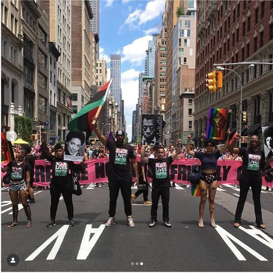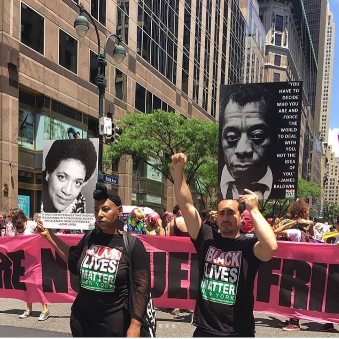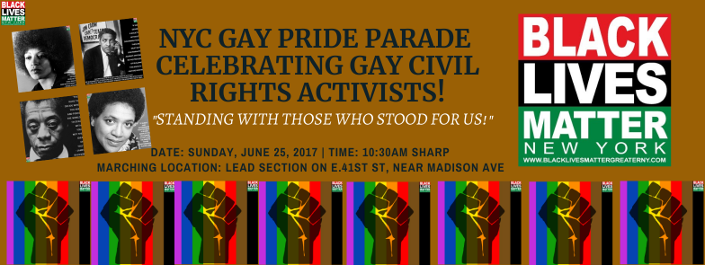 Social media promotional graphic for Black Lives Matter of Greater New York (BLMNY) 2017 NYC Pride Parade.